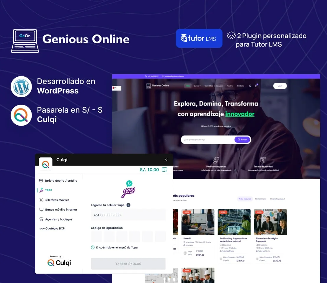 - Desarrollo en WordPress con Elementor y WooCommerce con complemento personalizado.