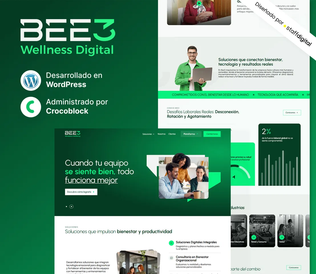 Con Crocoblock y ACF desarrollo contenido personalizado y filtros avanzados, permitiendo la independencia del cliente para editar secciones, portafolio, blogs y productos sin tocar código.